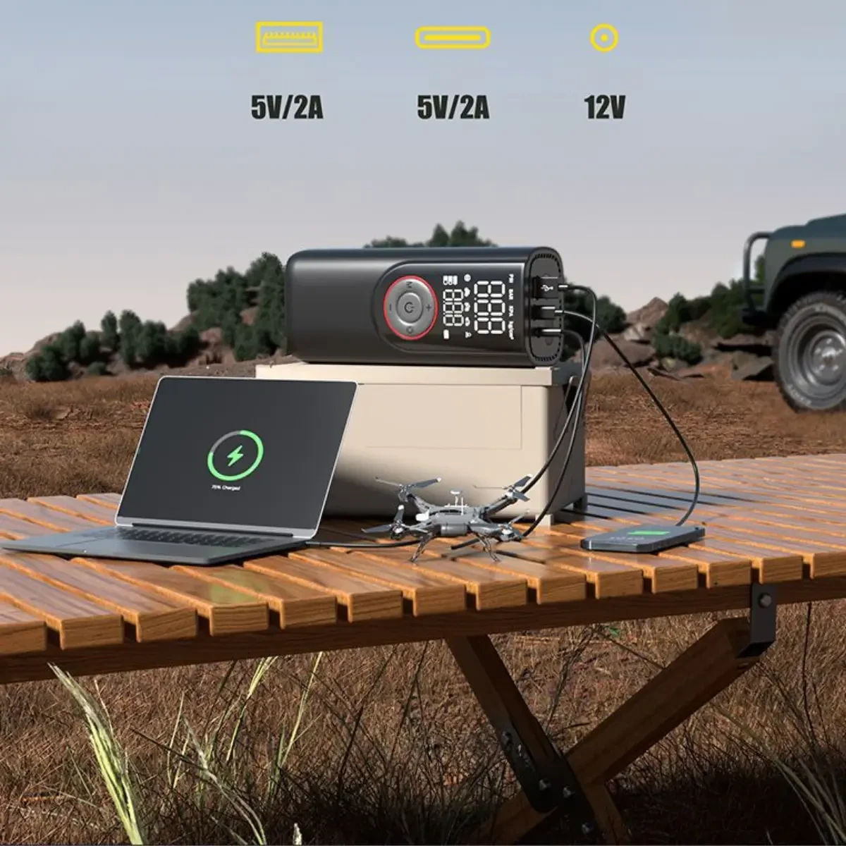 Підключайте компресор у машину або заряджайте через USB/Type-C — завжди готовий до роботи, навіть у дорозі чи на відпочинку.
