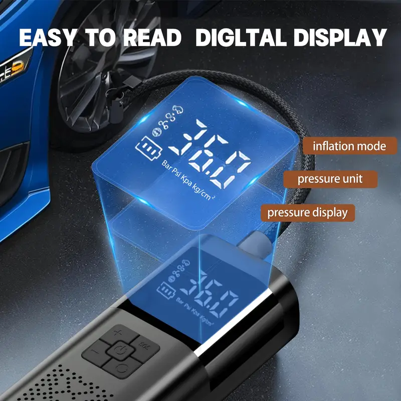 Максимальний тиск до 150 PSI (8.3 бар) дозволяє без зусиль підкачати навіть великі автомобільні шини. Це особливо зручно у дорозі, коли важлива кожна хвилина.