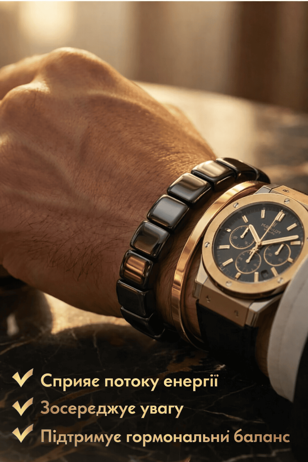 Цей магнітотерапевтичний браслет зігріває та дарує відчуття затишку на моєму зап'ясті. Не знаю, чи це просто психологічна причина, але він досить комфортний. Чорний варіант універсальний та гарний, а якість виготовлення вишукана. Він дійсно вартий своєї ціни.