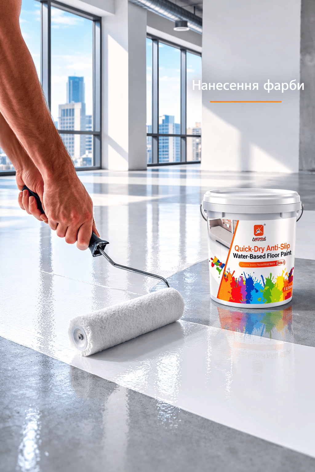 Наша фарба створює гладку та непористу поверхню, на якій не затримуються бруд та бактерії. Прибирання стає швидким та ефективним, а ваша підлога завжди виглядає ідеально чистою.
