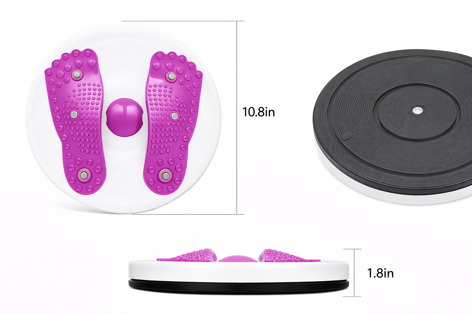 Рельєфна поверхня на диску призначена для акупунктурного масажу, під час заняття на диску. Диск забезпечує вплив на підошовну поверхню стоп, діє на біологічно активні зони стоп.