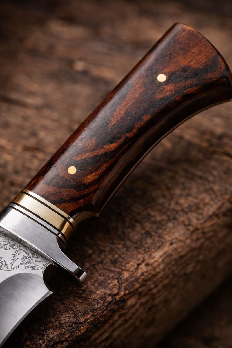 Рукоять виконана з темного дерева з природною текстурою, приємна на дотик і не ковзає в руці.