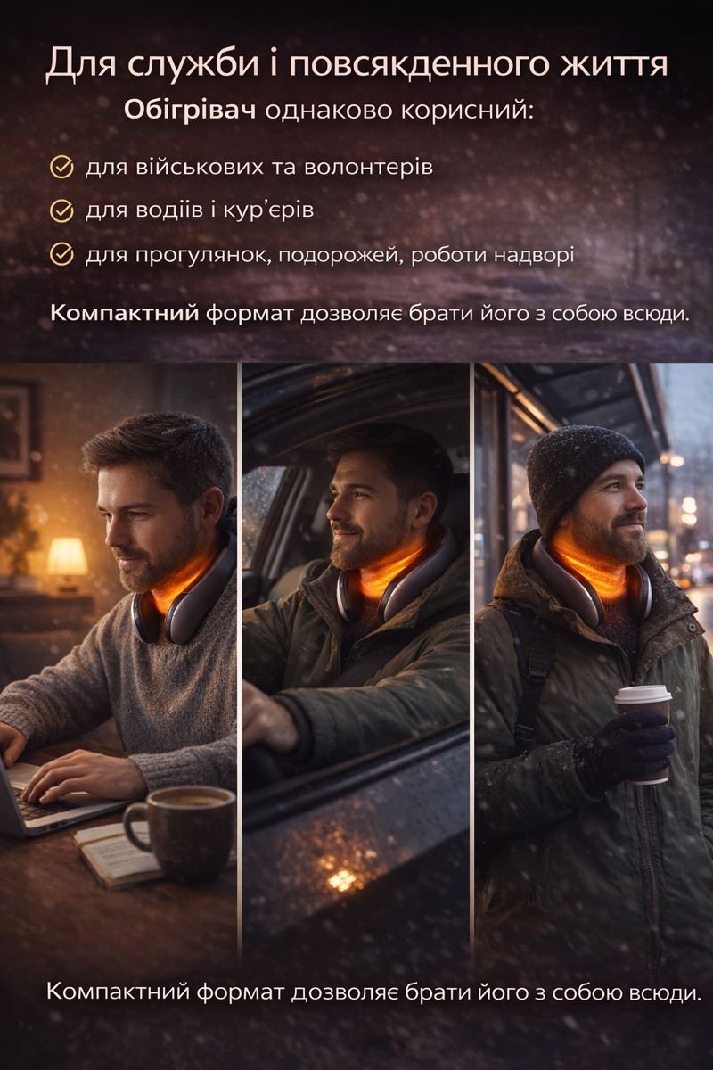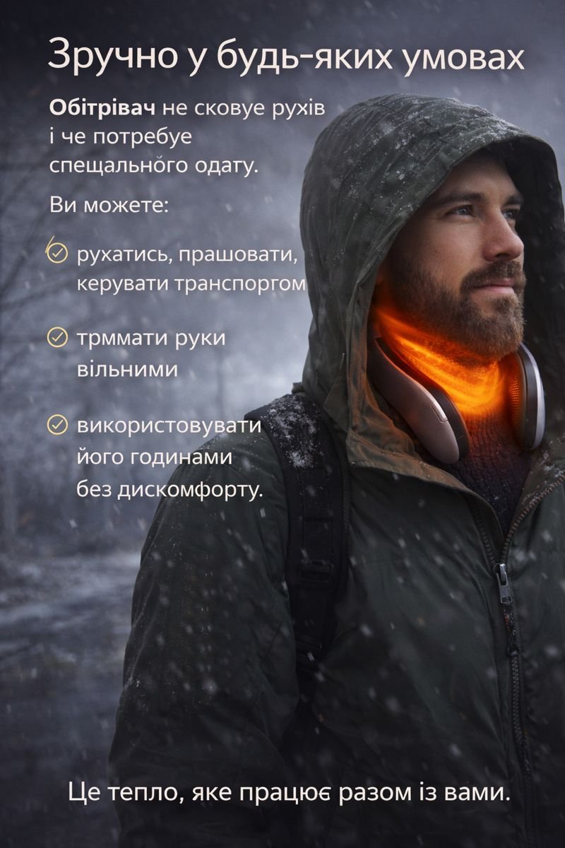 Він забезпечує м’яке локальне тепло саме там, де організм втрачає його найшвидше — в зоні шиї.