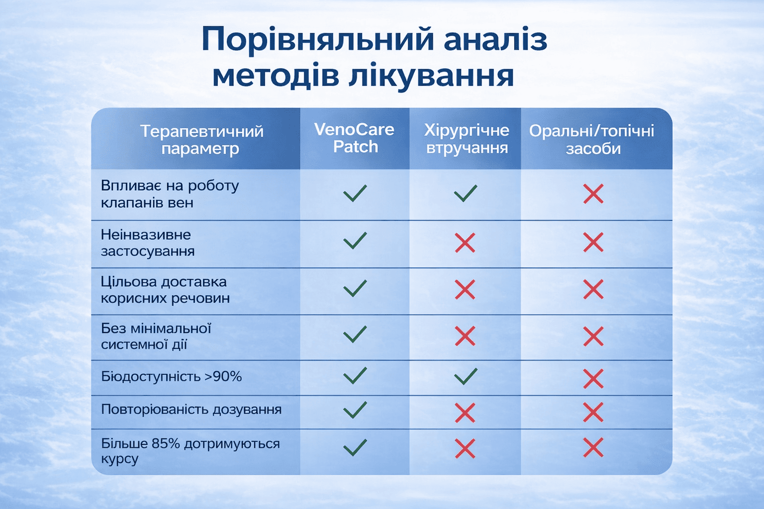 VeinTarget – це перша комерційно доступна трансдермальна фітотерапевтична система, спеціально розроблена для вирішення проблеми венозної клапанної недостатності шляхом локалізованого рослинного втручання