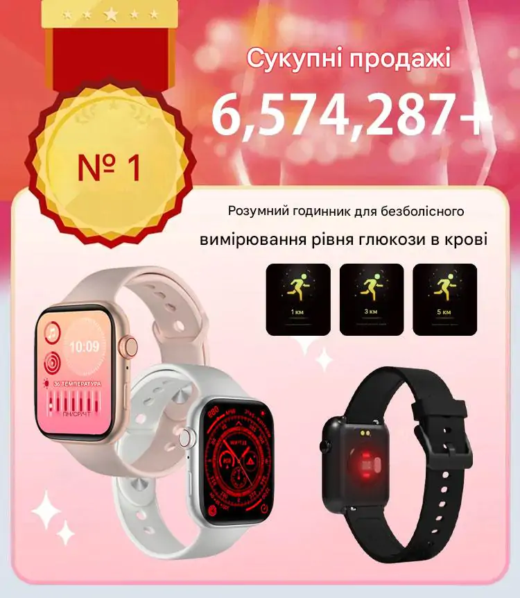 У мене діабет, і цей годинник став справжнім порятунком. Зручно перевіряти рівень цукру кілька разів на день без уколів. Дуже задоволена!