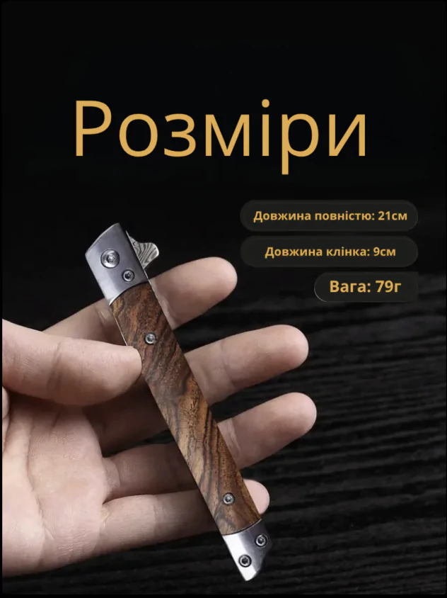 Міцний складаний ніж з натуральною дерев’яною рукояттю та чохлом у комплекті