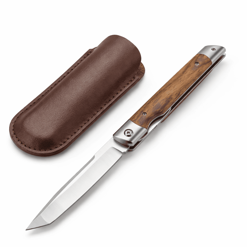 Міцний складаний ніж з натуральною дерев’яною рукояттю та чохлом у комплекті