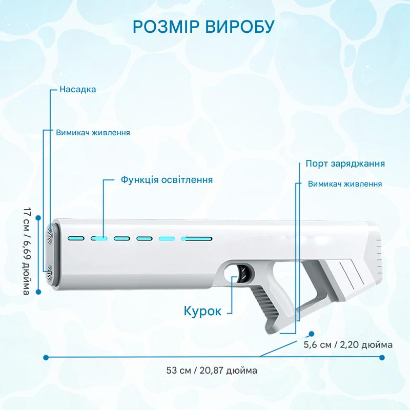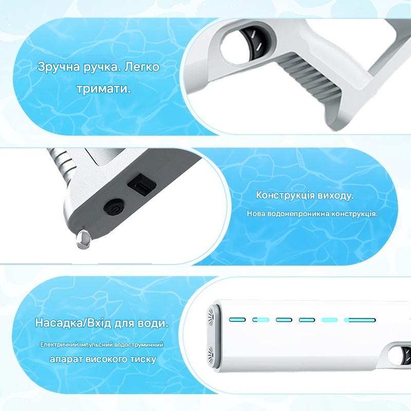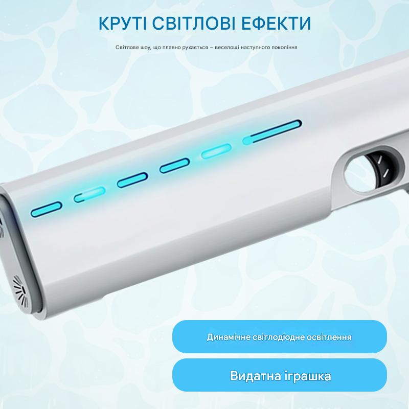 АВТОМАТИЧНЕ ПОГЛИНАННЯ ВОДИ ДЛЯ БЕЗПЕРЕРВНОЇ РОЗВАГИ – Просто занурте насадку у воду, і вдосконалена система всмоктування швидко наповнить резервуар. Ніякого ручного накачування чи заправки – лише миттєве перезарядження для безперервної гри, що робить його ідеальним для енергійних водних битв.