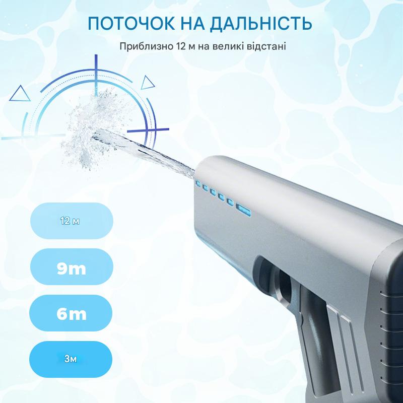 ДАЛЕКА ДАЛЬНІСТЬ ПОТОЧІВ ВОДИ ДЛЯ НАДЗВИЧАЙНОЇ ПРОДУКТИВНОСТІ – Розроблений для точності та потужності, цей водяний бластер стріляє струменями далі та швидше, надаючи вам конкурентну перевагу. Домінуйте у водних боях завдяки послідовним пострілам високого тиску, які змушують супротивників бігти.